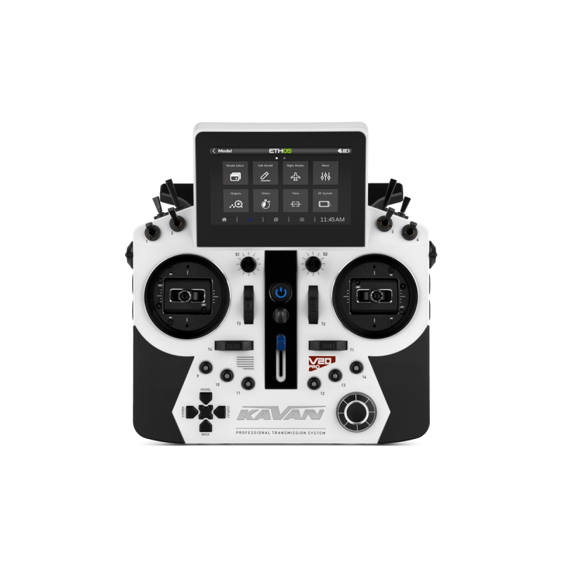 KAVAN V20 Pro je špičková 24kanálová RC souprava pro nejnáročnější modeláře se zcela novým třípásmovým přenosovým systémem TD Pro s plnou podporou telemetrie. Pyšní se špičkovou odezvou do 4 ms, a to na vzdálenost až desítky kilometrů. Zvolit můžete i přenosové systémy TW/TD/ACCESS/ACCESS R9/ACCST D16, rovněž s telemetrií. Spárovat V20 Pro tedy lze s celou řadou přijímačů KAVAN nebo FrSky, ať už telemetrických či nikoliv, s klasickými PWM a S.BUS výstupy.