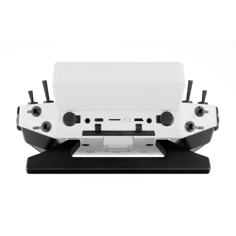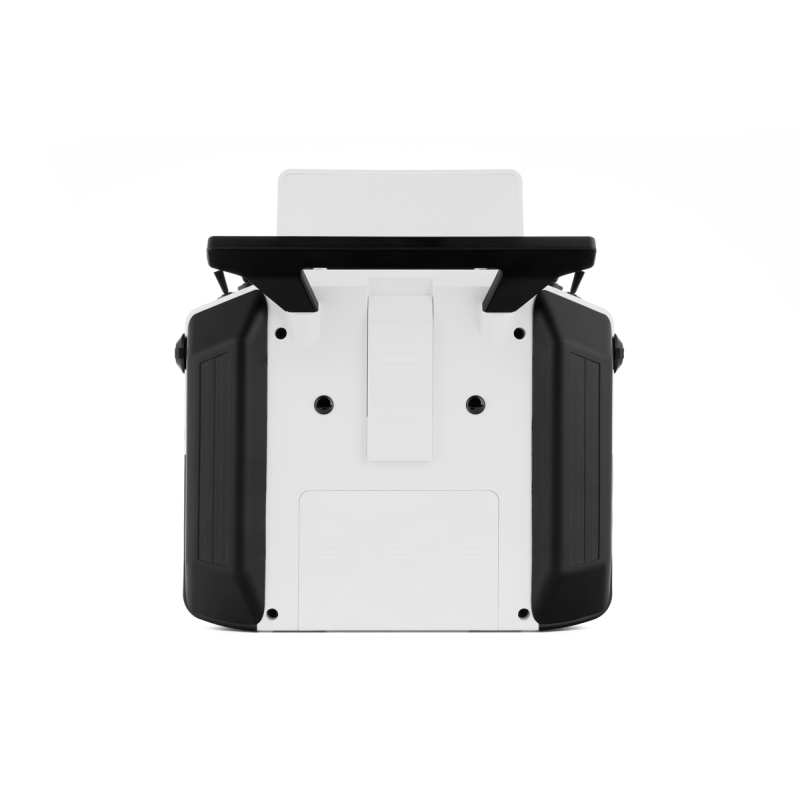 Tělo vysílače je robustní a dokonale padnoucí do ruky. Pogumované gripy na bocích a zadní straně vysílače poskytují pevný pohodlný a jistý úchop. Odtud bez obtíží dosáhnete na všechny ovladače. Gimbaly se nachází těsně u okrajů vysílače. Na komfortní držení vysílače tedy nepotřebujete ani pult. Pro maximální ergonomii lze dokoupit i dlouhé tuningové páky s přepínači.