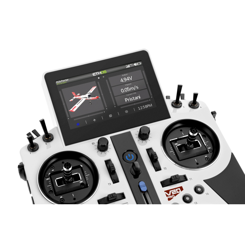 V20 Pro je vhodná pro pokročilé i sportovní piloty. Výtečně poslouží pro řízení nejrůznějších modelů letadel nebo heli/multikoptér. Snadno jej nastavíte například i pro lodě nebo pozemní modely. K tomu použijete širokou řadu funkcí a mixů dostupných v operačním systému ETHOS™. Ty pohodlně upravíte dle vlastních preferencí na velkém dotykovém barevném displeji s vysokým jasem.