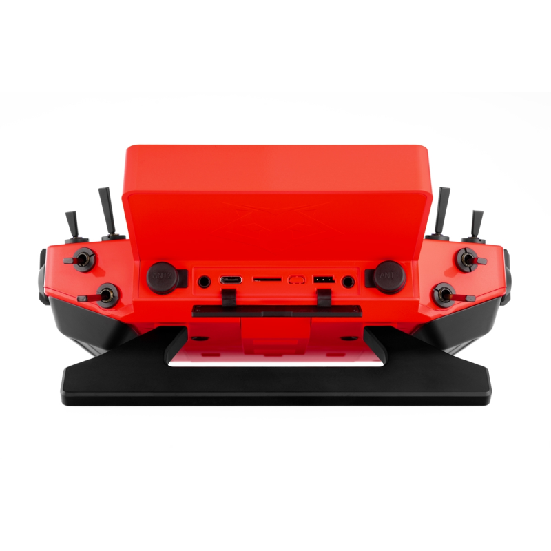 Tělo vysílače je robustní a dokonale padnoucí do ruky. Pogumované gripy na bocích a zadní straně vysílače poskytují pevný pohodlný a jistý úchop. Odtud bez obtíží dosáhnete na všechny ovladače. Gimbaly se nachází těsně u okrajů vysílače. Na komfortní držení vysílače tedy nepotřebujete ani pult. Pro maximální ergonomii lze dokoupit i dlouhé tuningové páky s přepínači.