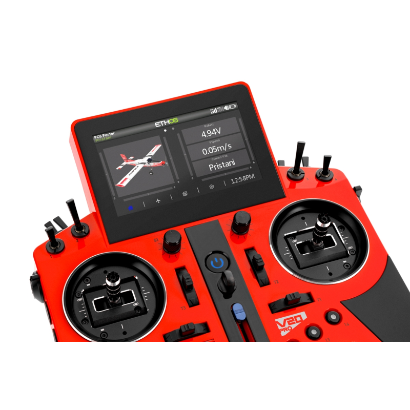V20 Pro je vhodná pro pokročilé i sportovní piloty. Výtečně poslouží pro řízení nejrůznějších modelů letadel nebo heli/multikoptér. Snadno jej nastavíte například i pro lodě nebo pozemní modely. K tomu použijete širokou řadu funkcí a mixů dostupných v operačním systému ETHOS™. Ty pohodlně upravíte dle vlastních preferencí na velkém dotykovém barevném displeji s vysokým jasem.