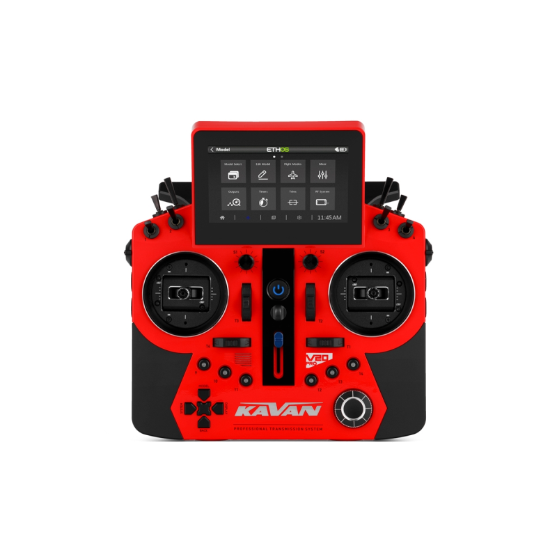 KAVAN V20 Pro je špičková 24kanálová RC souprava pro nejnáročnější modeláře se zcela novým třípásmovým přenosovým systémem TD Pro s plnou podporou telemetrie. Pyšní se špičkovou odezvou do 4 ms, a to na vzdálenost až desítky kilometrů. Zvolit můžete i přenosové systémy TW/TD/ACCESS/ACCESS R9/ACCST D16, rovněž s telemetrií. Spárovat V20 Pro tedy lze s celou řadou přijímačů KAVAN nebo FrSky, ať už telemetrických či nikoliv, s klasickými PWM a S.BUS výstupy.