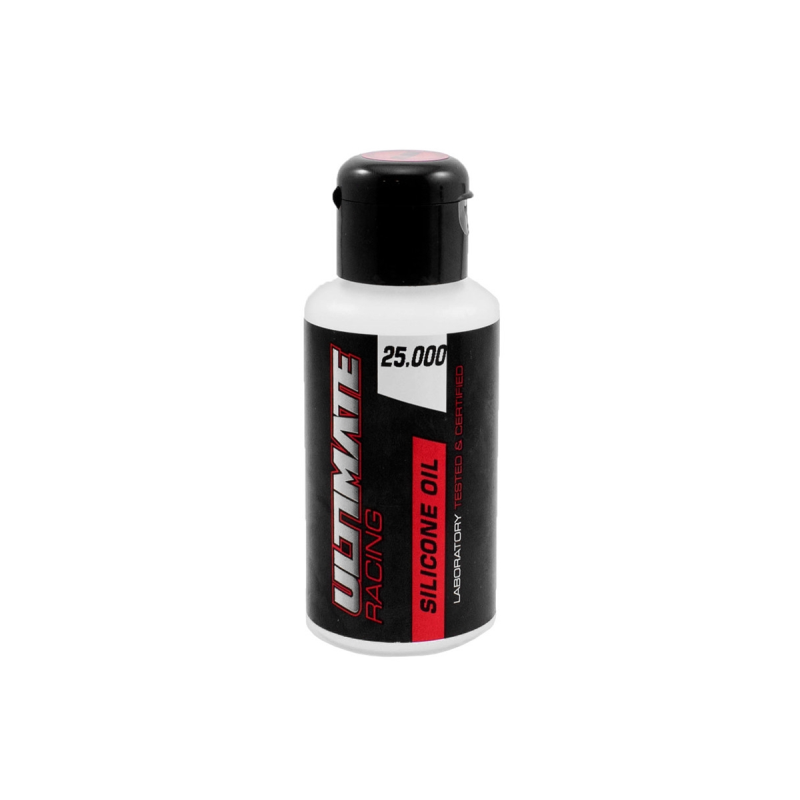 75ml láhev silikonového oleje pro diferenciály Ultimate Racing 25.000 cSt pro terénní i silniční modely v měřítku 1:8 a 1:10. Olej Ultimate Racing je vyroben ze 100% čistého silikonového oleje a nezředí se v horkém počasí ani nezhoustne v chladném počasí. Čím je olej hustší, tím méně se diferenciál „roztáčí“ v zatáčkách, kde se obě kola otáčejí různou rychlostí. Výměna oleje v diferenciálech je jednou z nejdůležitějších možností ladění závodních modelů. Silikonový olej Ultimate Racing obsahuje protitřecí přísady, které minimalizují změny viskozity.