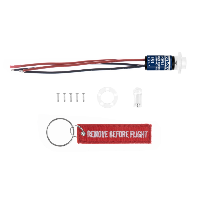 Výkonný digitální spínač typu „Remove before flight“. Funguje na principu magnetického ovládání – vsunutím dodávaného aktivačního kolíku s magnetem do otvoru dojde k odpojení napájení (rozpojení obvodu). Vysunutím kolíku se spínač sepne a napájený obvod se aktivuje. Zapnutý stav je indikován rozsvícením LED kontrolky.