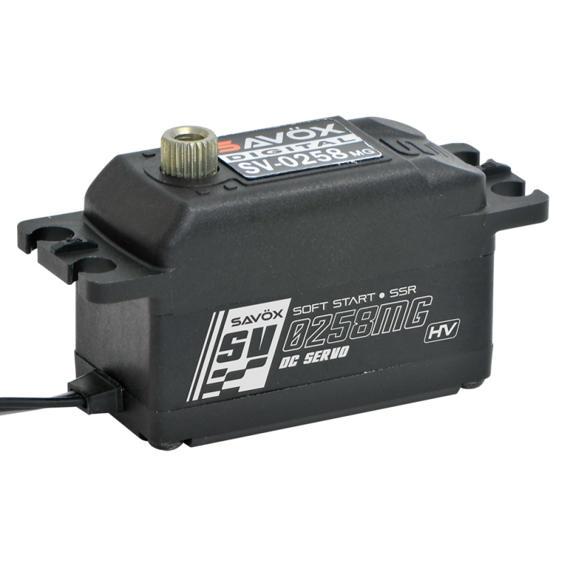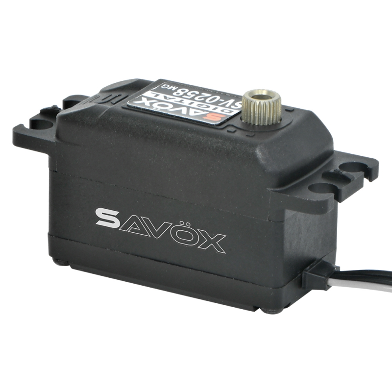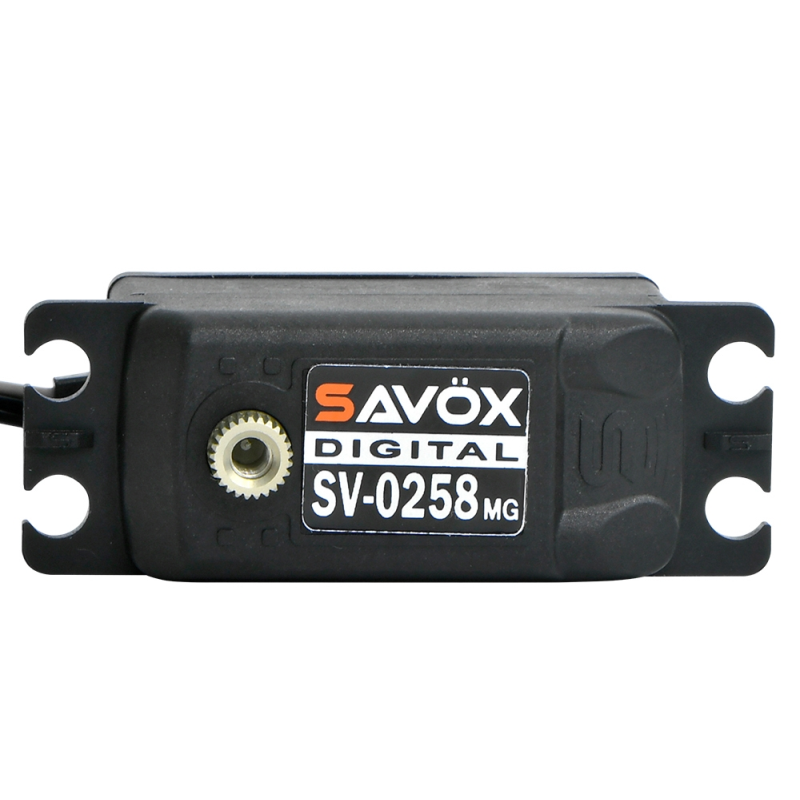 Savöx SV-0258MG je základní nízkoprofilové servo navržené pro maximální výkon a efektivitu. Díky nízké spotřebě funguje bez problémů s většinou regulátorů – bez nutnosti přídavných kondenzátorů.