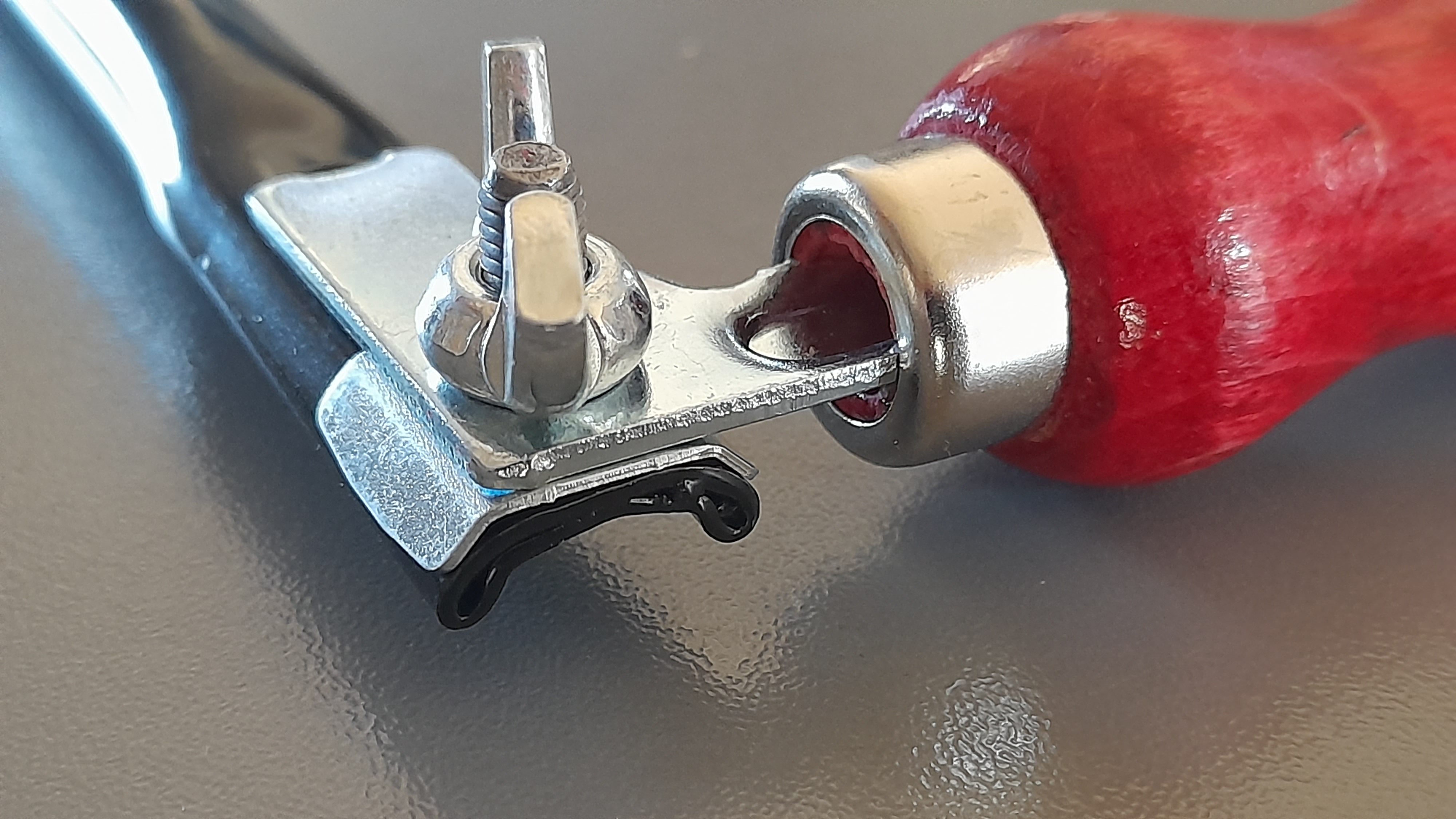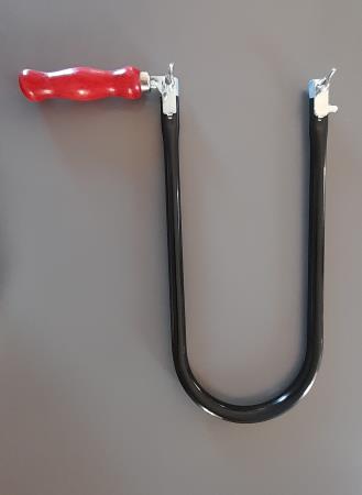 Ruční lupénková pilka s lehkým ocelovým kulatým rámem, bukovou rukojetí a přesnou upínací kleštinou. Hloubka řezu: 300 mm.