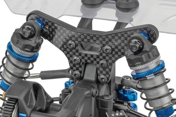 - Nízkoprofilová karoserie RC10B7, 7palcové zadní křídlo a 2,5palcové přední křídlo