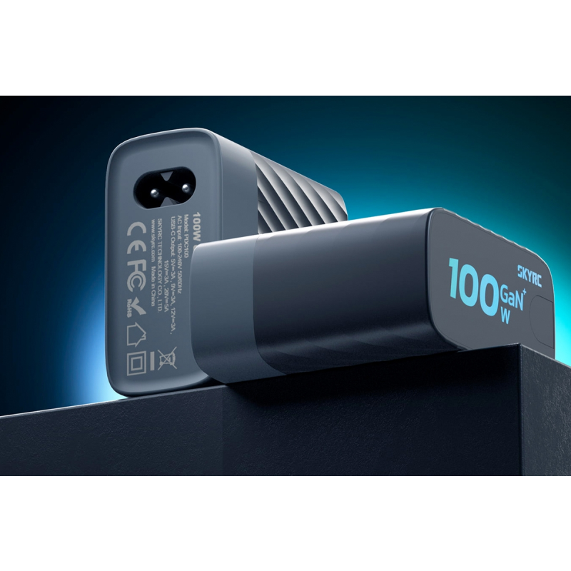 USB-C nabíječ/napájecí zdroj SKY RC PDC100 je kompaktní síťový nabíječ/zdroj s výkonem až 100 W s USB-C výstupem podporující protokoly pro rychlé nabíjení PD3.0, PPS, QC2.0/3.0, takže zajišťuje širokou kompatibilitu a umožňuje rychlé nabíjení mobilních zařízení a napájení nabíječů SkyRC. Je výborným společníkem na cesty, kdy s sebou nechcete „tahat" velký, těžký a drahý nabíječ a napájecí zdroj.