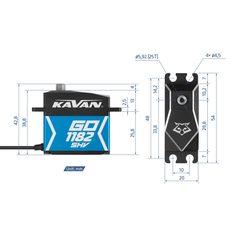 Velmi silné a extrémně rychlé digitální standardní servo 83g se střídavým (brushless) motorem s titanovými/ocelovými převody a výstupní hřídelí uloženou na třech kuličkových ložiscích pro použití především jako servo cykliky v RC vrtulnících 500–800 apod. Pro dokonalé chlazení i při vysokém zatížení je servo uloženo v hliníkové krabičce.
