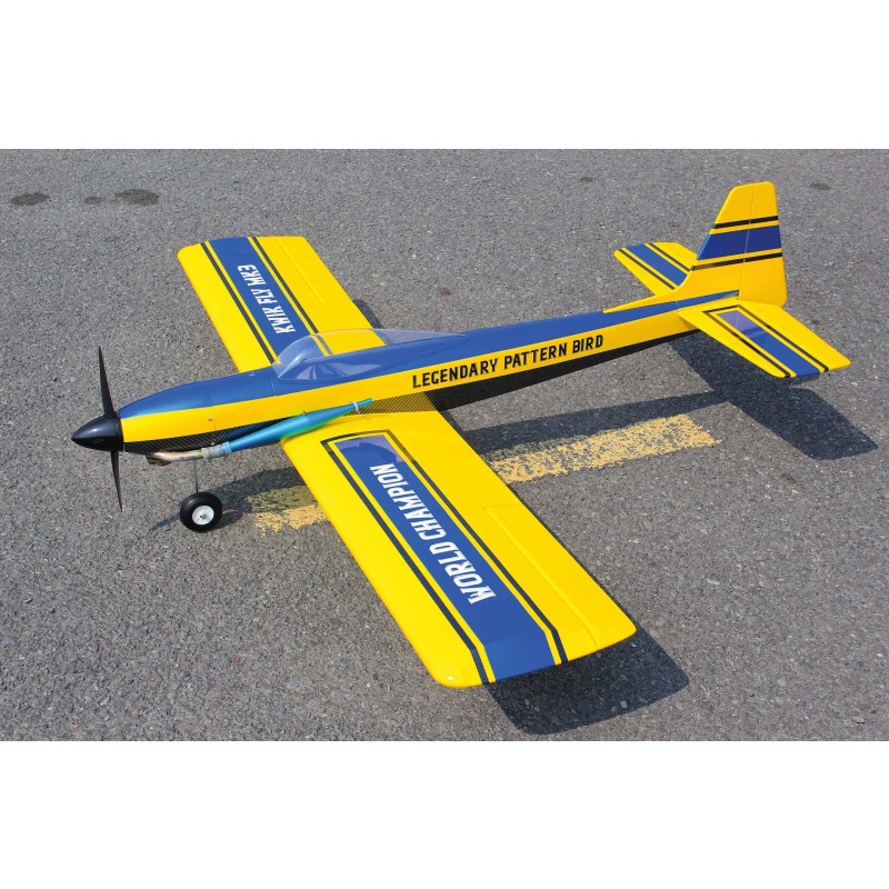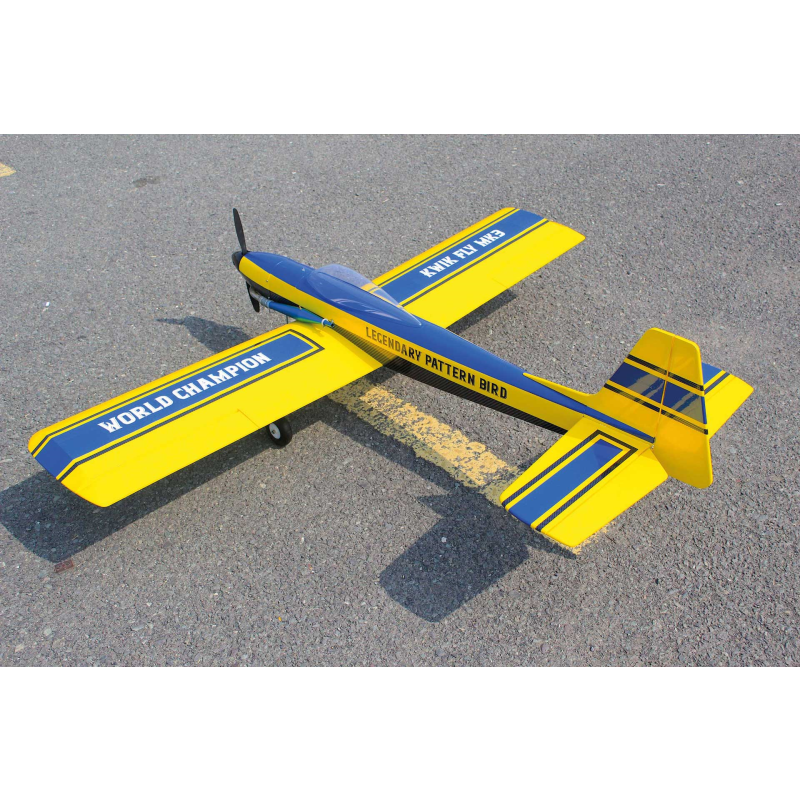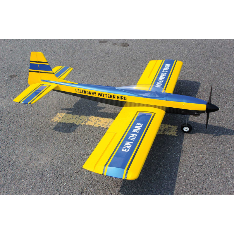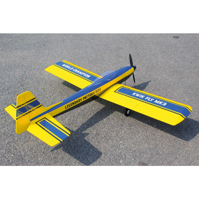 V roce 1967 se Phil Kraft stal mistrem světa FAI v kategorii RC modelů se svým vlastním návrhem Kwik-Fli Mk III. Ačkoli existovaly i elegantnější modely, právě tento se proslavil nejvíce – pravděpodobně díky zisku titulu mistra světa – a byl následně stavěn a oblíben modeláři po celém světě. Model je vyroben z vysoce kvalitní balzy a balzové překližky, což umožňuje velmi lehkou a přitom pevnou konstrukci, a jeho křídlo s jednoduchou montáží usnadňuje skladování i transport na letiště. Velká odnímatelná servisní dvířka poskytují pohodlný přístup k RC vybavení a k letovému akumulátoru pro ty, kteří volí elektrický pohon, zatímco křišťálově čistá kabina a výrazné barevné schéma s lakovanou motorovou kapotou zajišťují atraktivní vzhled i výbornou viditelnost. Tříkolový podvozek umožňuje snadné pojíždění, starty a přistání a kombinace trenérových vlastností s vysokým akrobatickým potenciálem dělá z modelu univerzální volbu pro široké spektrum pilotů. Součástí balení je motorová přepážka, držák akumulátoru a veškeré další potřebné díly, takže můžete od začátku létat elektricky, a zároveň jsou přiloženy všechny komponenty potřebné pro spalovací i elektrický pohon.