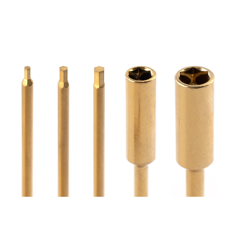 Součástí balení jsou bity z tvrzené oceli s titanovou povrchovou úpravou, které spolehlivě odolají běžnému zatížení i krouticímu momentu. K dispozici jsou velikosti 1,5mm, 2,0mm, 2,5mm, 5,5mm a 7,0mm.
