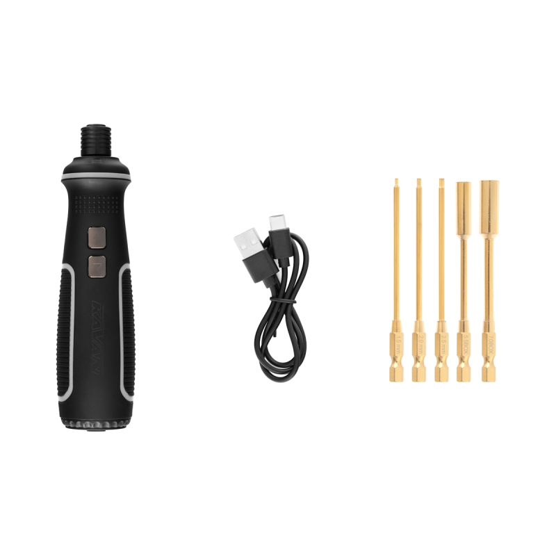 KAVAN elektrický šroubovák je praktický pomocník, který uleví vašemu zápěstí a výrazně urychlí práci při skládání a údržbě RC modelů a jejich součástí.