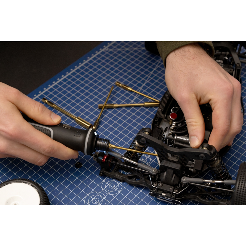 Šroubovák je vybaven rychloupínacím adaptérem pro 6,35mm šestihran, kompatibilním s širokou škálou běžných bitů vhodných nejen pro RC modely, ale i další použití.