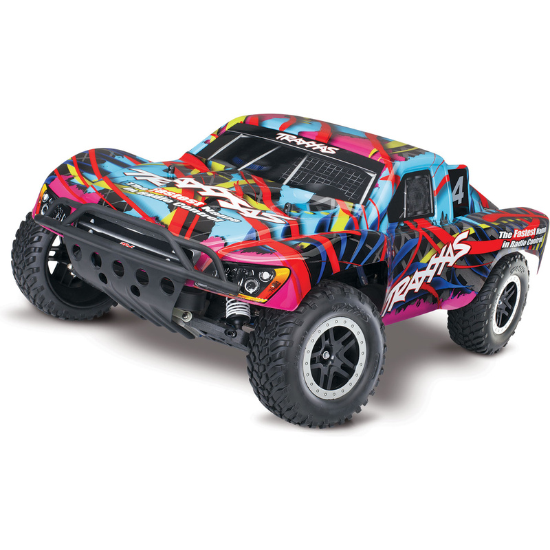 RC auto TRAXXAS Nitro Slash s výkonným spalovacím motorem TRX 3.3 dokáže hravě modelu udělit rychlost až 80 km/hod. Užijte si ryzí jízdu se spalovacím Nitro motorem! Odolný a osvědčený podvozek modelu Slash je zárukou výborných jízdních vlastností. Dokonalé ovládání i ve vyšších rychlostech zajistí dvoukanálová RC souprava v pásmu 2.4 GHz s elektronickou stabilizací jízdy TSM.