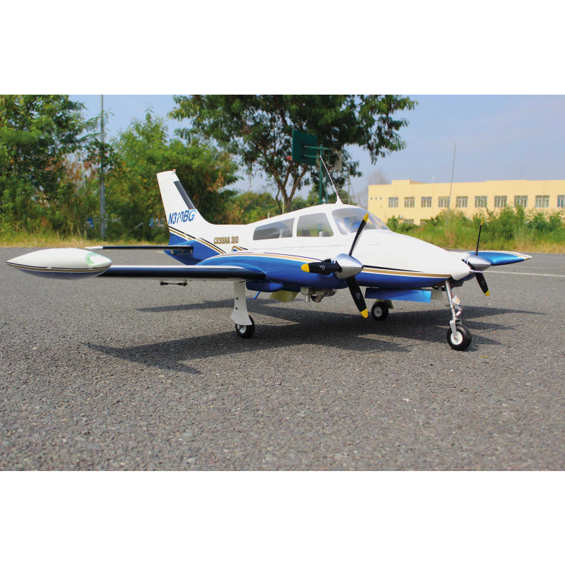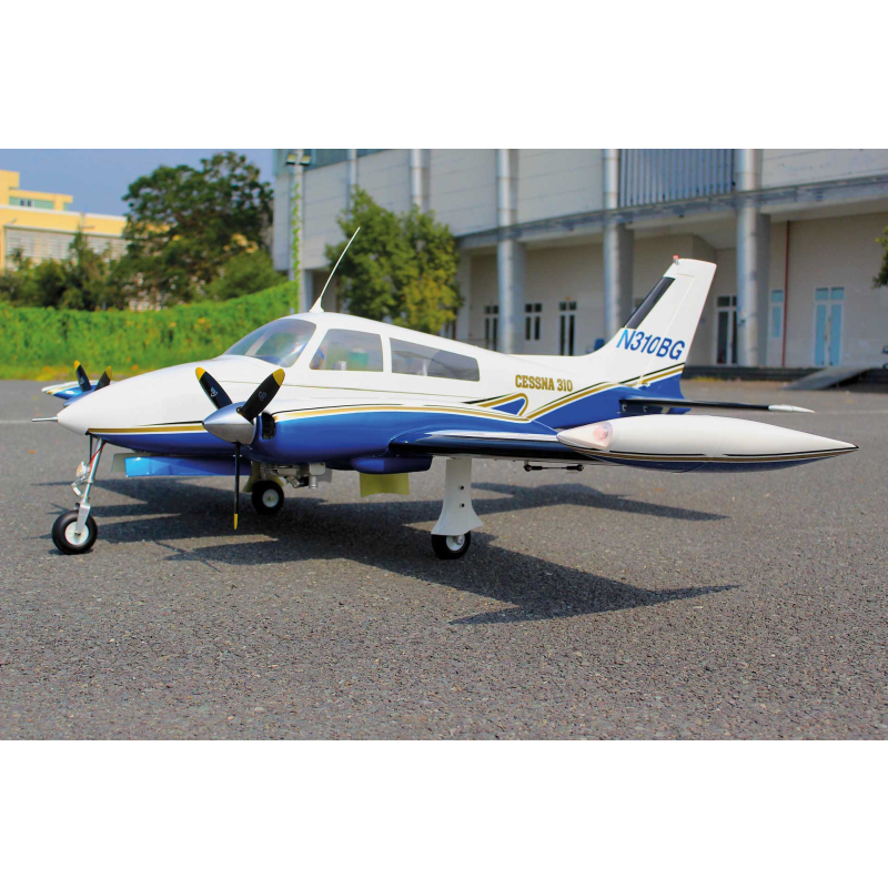 Cessna 310 Giant působí jako nádherný a výjimečný model, který díky své profesionálně zpracované konstrukci z laserem řezané balzy a překližky nabízí nízkou hmotnost, vysokou pevnost a dlouhou životnost. Dvoudílné křídlo s kompletním balsovým potahem zajišťuje skvělou tuhost a letové vlastnosti, zatímco velká horní servisní klapka umožňuje pohodlný a rychlý přístup k akumulátorům i elektronice.