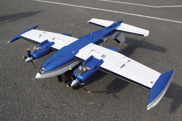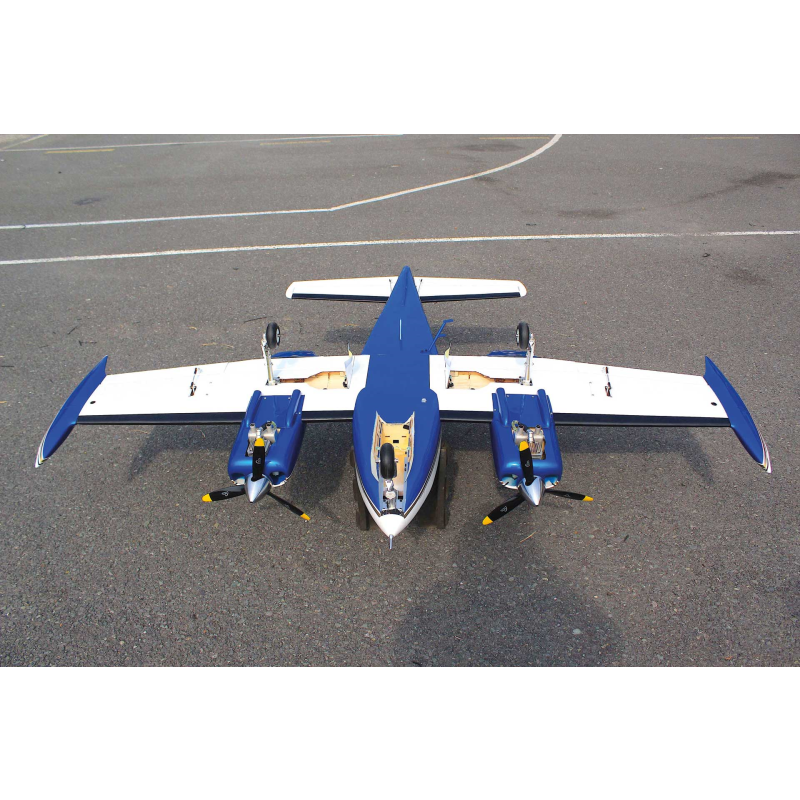 Dodávány jsou dva CNC obráběné hliníkové spinnery o průměru 2,5", Kokpit je vybaven realistickým přístrojovým panelem a čtyřmi ABS sedadly a továrně lakované GFK gondoly i koncové nádrže zajišťují perfektní vzhled bez nutnosti dalších úprav.