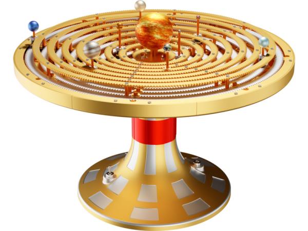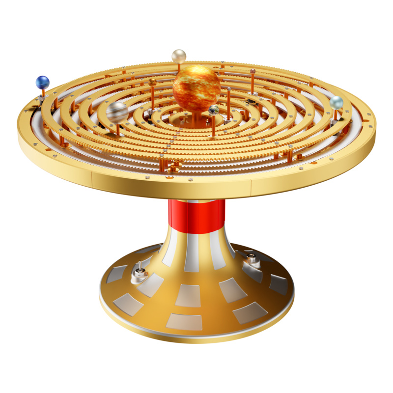 Předlohou tohoto modelu je tzv. mechanický model sluneční soustavy, označovaný jako orrery – zařízení, které názorně zobrazuje pohyb planet kolem Slunce. První podobné přístroje vznikaly už v 18. století jako vědecké a výukové pomůcky. Jejich konstrukce vycházela z heliocentrického modelu sluneční soustavy, který formuloval astronom Nicolaus Copernicus v 16. století. Tento model popisuje, že planety obíhají kolem Slunce po svých drahách.