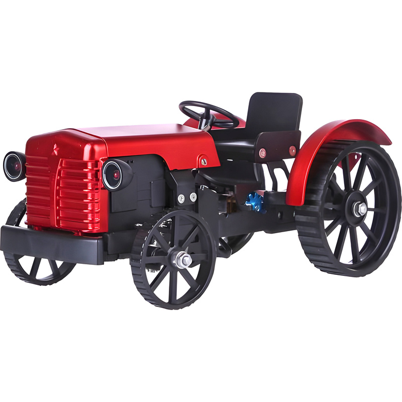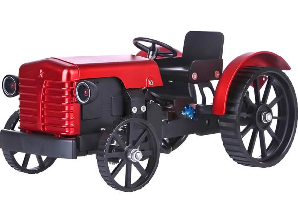 Stavebnice precizního kovového modelu Teching - traktor. Detailní otevřená konstrukce demonstruje základní mechanické principy. Přední náprava je odpružená, kapotu lze otevřít. Ovládání aplikací, elektromotor, funkční řízení, světla, elektronika a akumulátor. Výstavní i funkční model.
