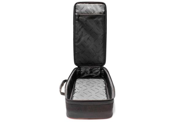 Taška obsahuje vnitřní kapsu na zip pro dokumenty nebo ploché náhradní díly a gumový držák na štítek na vnější straně pro snadnou identifikaci.