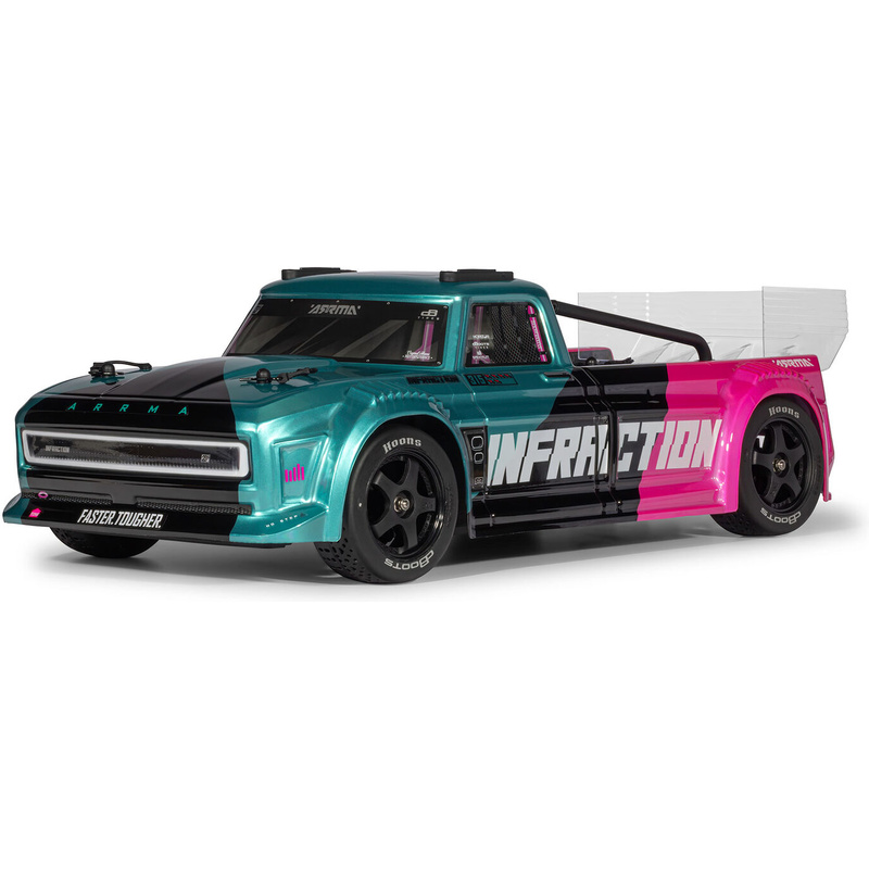 Vzrušující RC model auta Arrma Infraction 223S v měřítku 1:8. Koncepce modelu typu Street Bash je zaměřena na zábavnou jízdu na tvrdých rovných površích. Každé parkoviště, ulička nebo hřiště se tak může stát vaší dráhou. S náhonem 4WD, nezávislým zavěšením, nápravovými diferenciály, olejovými tlumiči a výkonným střídavým pohonem, poskytuje model neuvěřitelnou hbitost, akceleraci a dosáhne rychlosti až 100 km/h (s přibaleným rychlostním pastorkem). Obsažena je exkluzivní stabilizace jízdy DSC. Ještě lepší pocit z jízdy a větší odolnost přinášejí novinky v podobě pneumatik s integrovaným pásem, přepracovaného pohonného ústrojí s kovovými hruškami diferenciálů a středovým absorpčním členem místo třecí spojky. Dále jsou nově instalovány silikonové dorazy tlumičů. Ať už jste nováčkem v jízdě na silnici nebo zkušeným řidičem, model umožňuje pomocí různých funkcí a výběru akumulátoru, přesně upravit vlastnosti dle vašich potřeb.