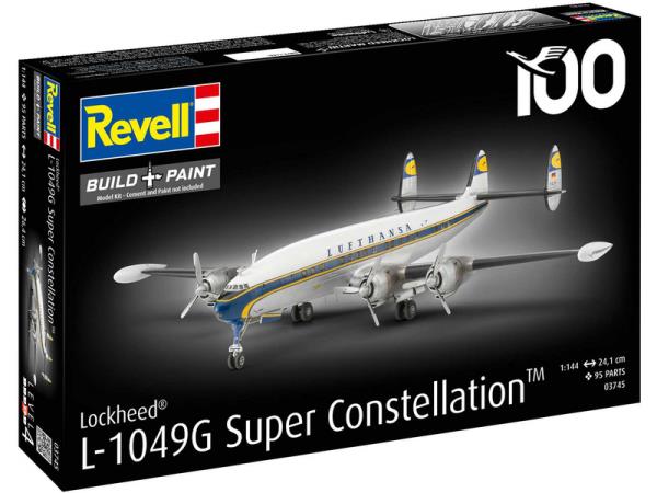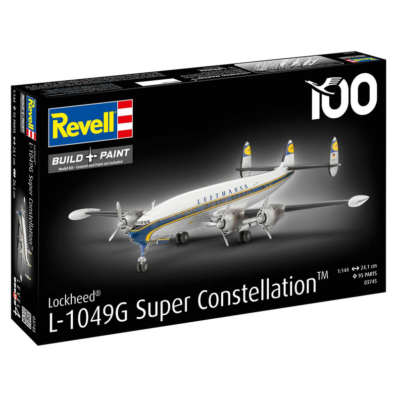 Revell plastikový model letadla Lockheed L.1049G Super Constellation Lufthansa v měřítku 1:144 ke slepení. Stavebnice obsahuje 95 dílků, rozpětí křídel 24,1 cm, obtížnost 4.