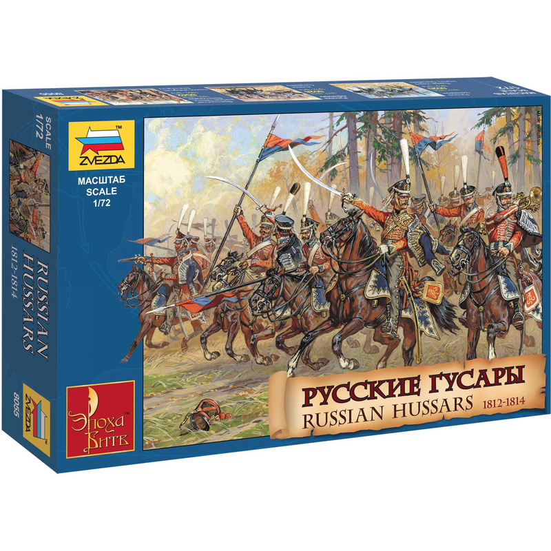 Plastikový model Zvezda 8055 - figurky ruských husarů 1812-1814 v měřítku 1:72. Stavebnice obsahuje 18 nenabarvených figurek, výška figurky 35 mm. Ideální pro doplnění plastikových modelů či diorámat.
