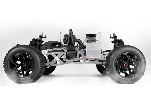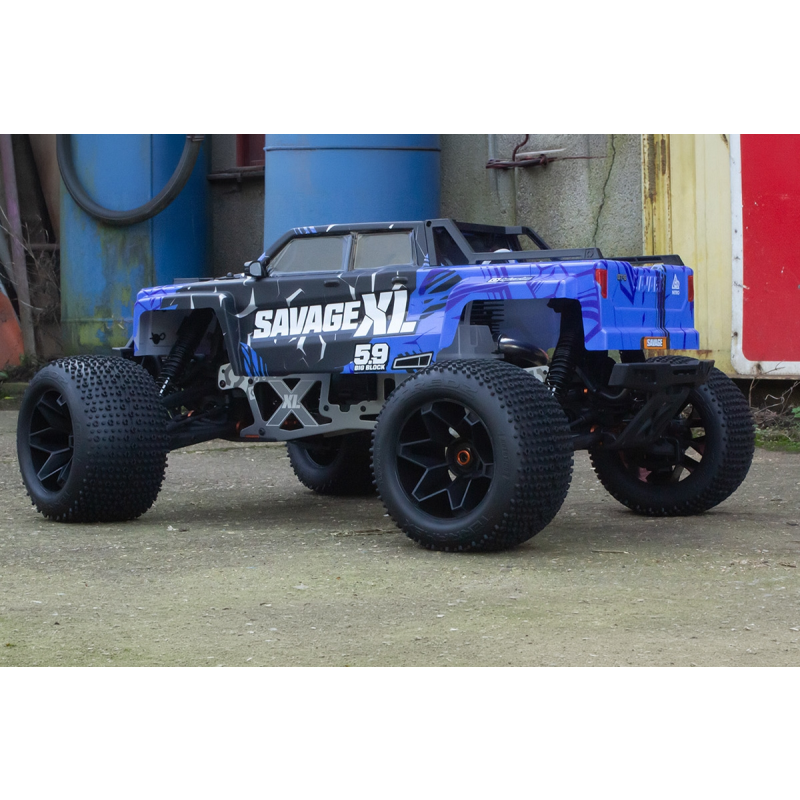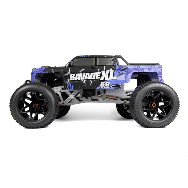 Model XL, postavený na osvědčené platformě Savage X, se vyznačuje prodlouženým podvozkem TVP, delším rozvorem a širokým, stabilním rozchodem kol, což zaručuje jisté ovládání v náročném terénu. Jádrem vozu je výkonný motor o objemu 5,9 cm³, spárovaný s robustním pohonem navrženým pro náročné podmínky.