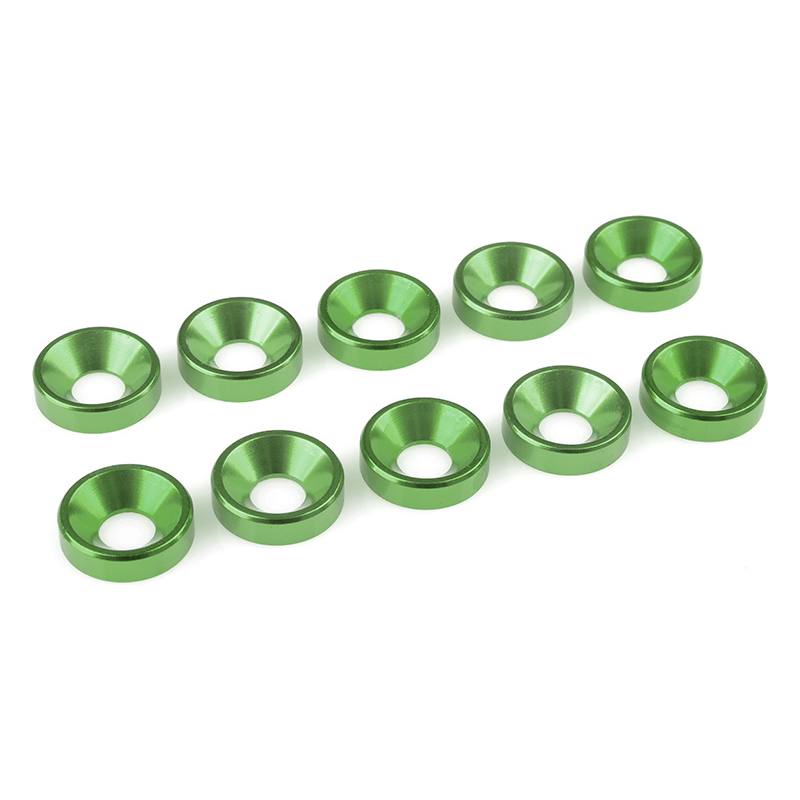 Hliníková podložka pod šroub M5 se zapuštěnou hranou. Zeleně eloxovaná. Balení obsahuje 10 ks.
