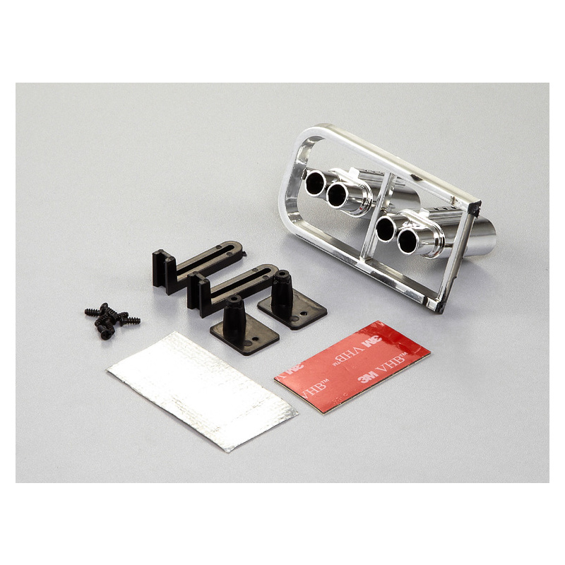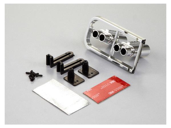 Chcete, aby Váš RC model auta 1:10 byl ještě realističtější? Killerbody vám nabízí detailně zpracovanou maketu koncovku výfuku v chromovaném provedení, vyrobenou z ABC materiálu. Maketa je s koncovkou dvojité výfukové trubky. Obsahem balené je 2 x koncovka výfuku, montážní sada, oboustranná lepící páska.