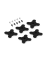 Doporučené příslušenství pro RC modely lodí, Lodní kormidlo kovové obdelníkové s rozměry 40x25mm, celková výška 80mm. Z kormidla jde pevná mosazná hřídel 4mm o délce 40mm, na které je červíkem polohována plastová páka s hliníkovým pouzdrem s osou otvoru ve vzdálenosti 16mm od osy otáčení. Na otočné trubce 6/4mm je pouzdro s průměry 8/16mm.