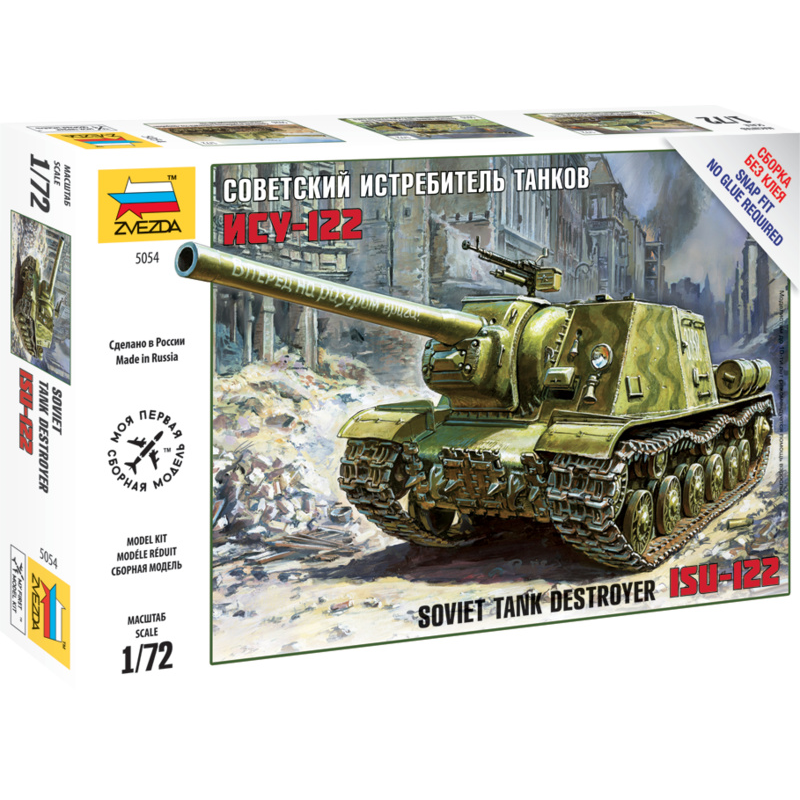 Plastikový model Zvezda 5054 - samohybné dělo ISU-122 v měřítku 1:72. Stavebnice obsahuje 120 dílků, délka 137 mm, obtížnost 3.