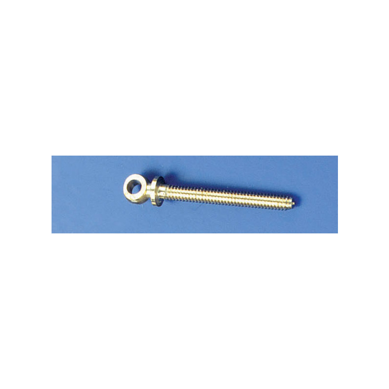 Maketové doplňky pro modely lodí Krick: Šroub s okem M2x1mm (10 ks). Soustružená mosazná oka se závitem pro pevné uchycení lan. Délka závitu 14mm, průměr hlavy 3,8mm, otvor 2mm.